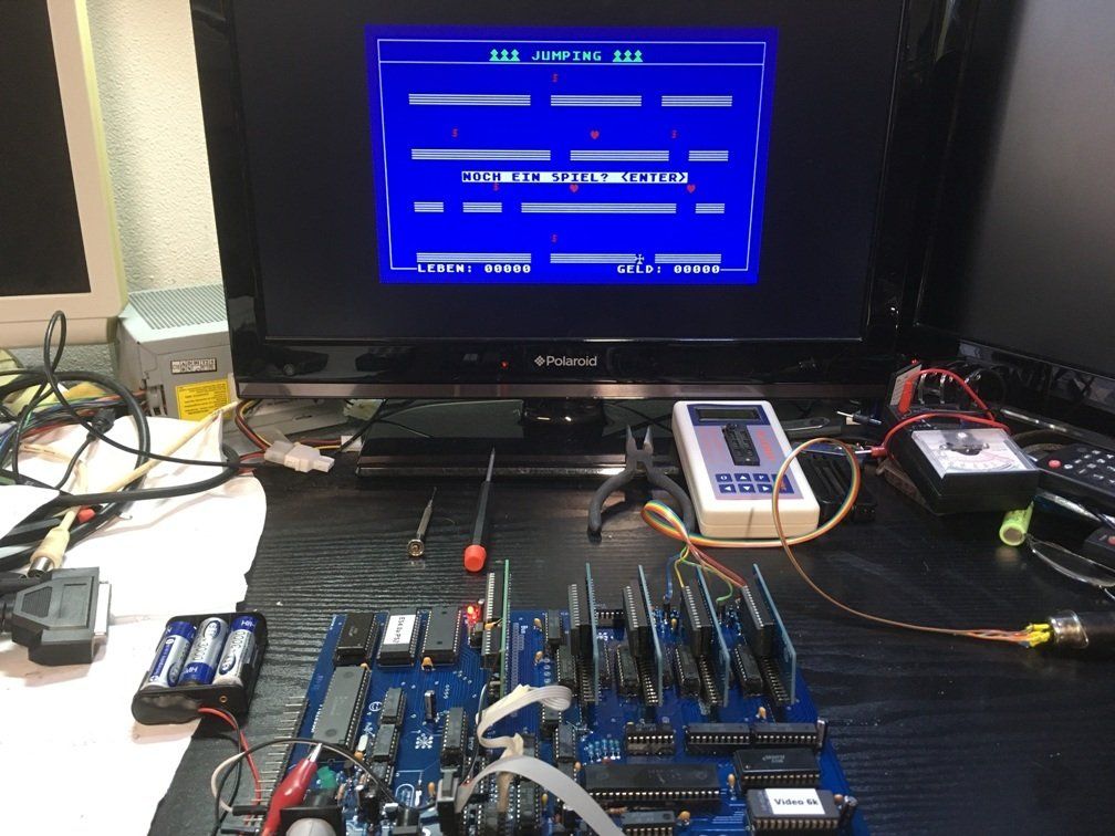 Auf dem Bild ist mein JU+TE 6k/ blaue Platinenversion 2021 mit vier Video-RAM-Modulen, also der komplette Ausbau zu sehen. Zusätzlich befindet sich auf dem ROM-Steckplatz noch eine EPROM-Bank mit 16 x 8kB "JU+TE Tiny-Programmen".